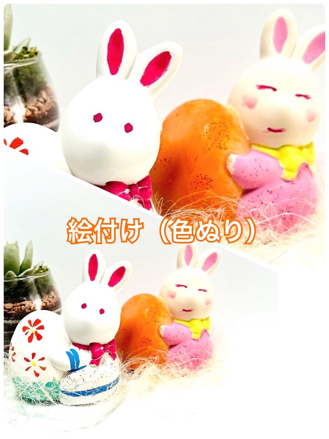 うさぎの貯金箱へ絵付け体験