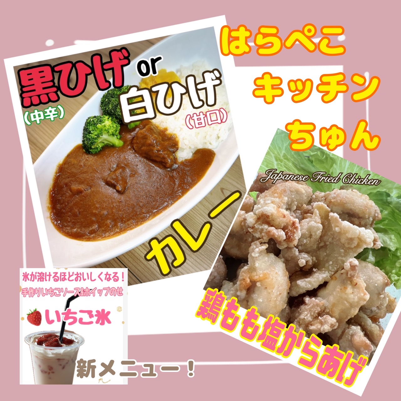 内容:八ヶ岳の喫茶店で人気だった「黒ひげ」カレーと黒ひげをアレンジしたお子様にも食べやすい「白ひげ」カレーと食べたらハマる‼塩からあげ串をお持ちします。