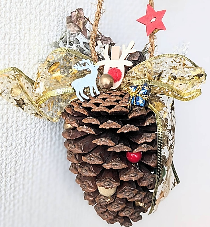 本物の巨大松ぼっくりで、リースや正月飾りを作ります。